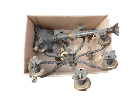Lampadario a otto luci in metallo decorato a foglie (difetti e mancanze)