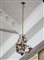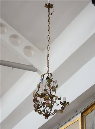 Lampadario a tre luci in metallo dorato decorato in policromia a fiori e foglie