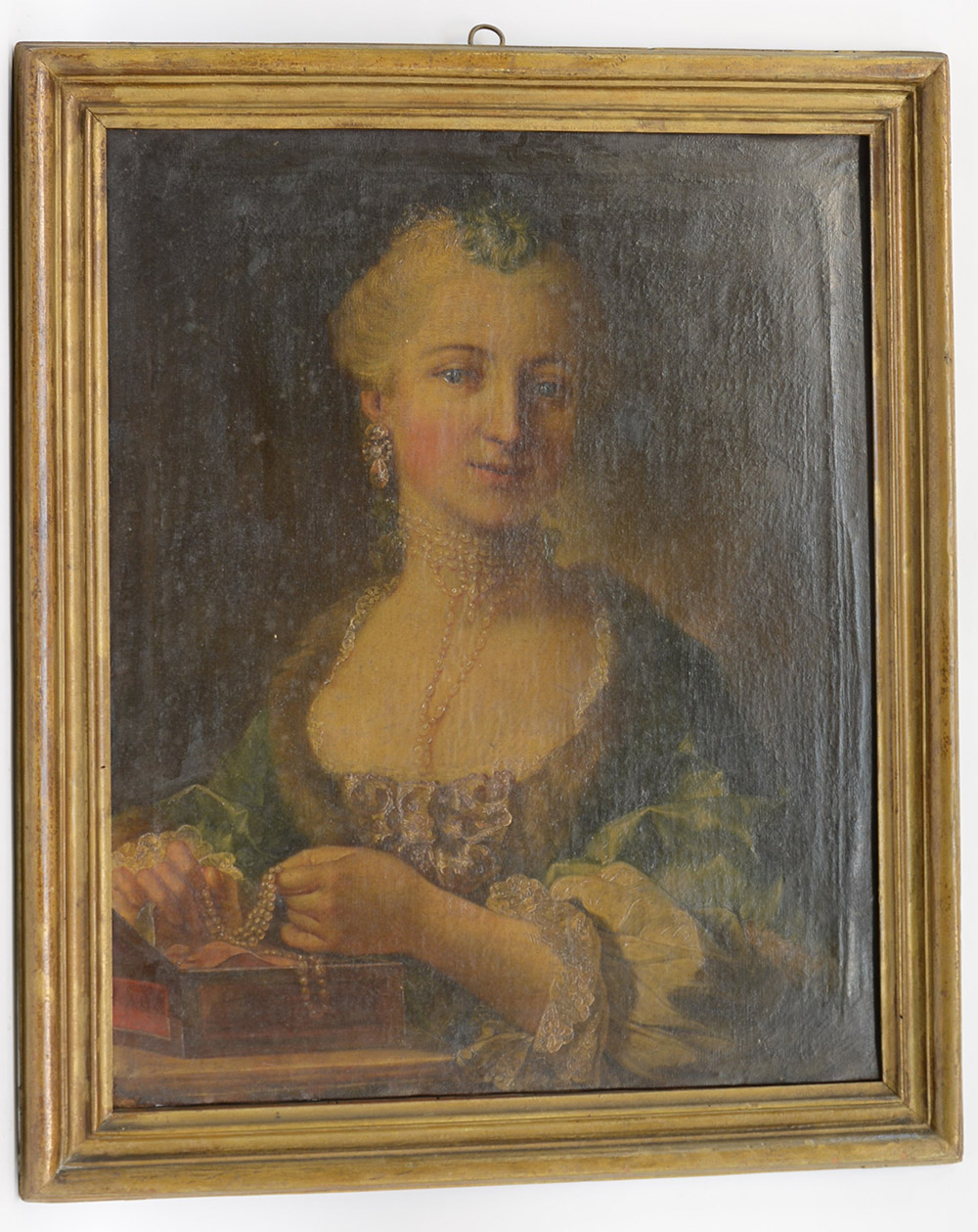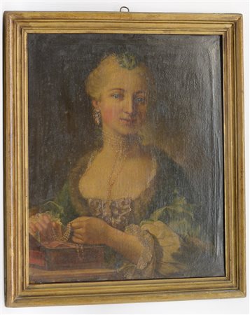 Scuola del sec. XVIII "Ritratto di gentildonna con collana di perle" olio su tela (cm 66x53) in cornice