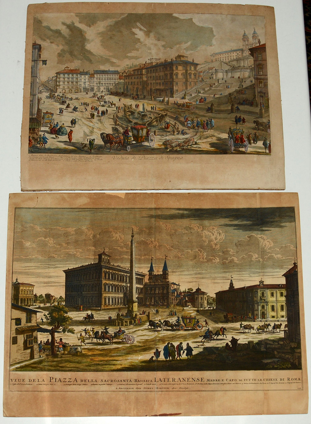 Vedute di Roma, lotto composto da due stampe a colori da Piranesi e Mortier,...
