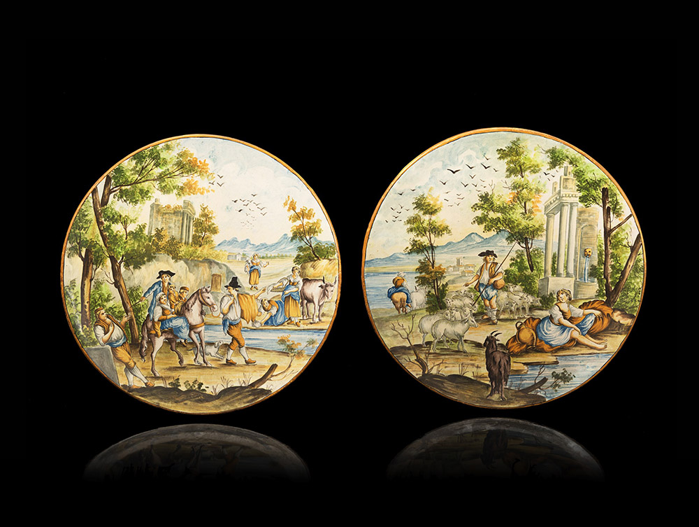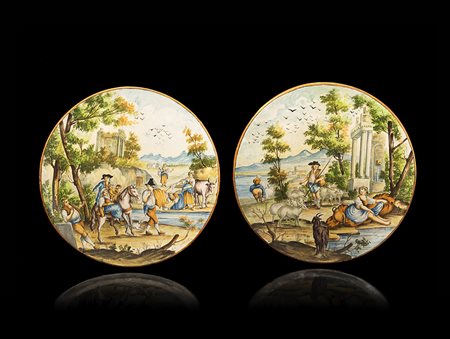 Manifattura dell'Italia centrale, fine sec. XIX. Coppia di piatti in ceramica...