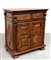 Credenza a due ante e due cassetti intagliati a rami fioriti e mascheroni, fianchi decorati con motivi romboidali montanti scanalati poggiante su piedi squadrati (cm 103x54x110)