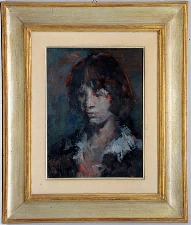 Locatelli Raffaello Bergamo 1915 "Ritratto di giovane" olio su cartone pressato firmato e datato 1976 al retro (cm 40x30) In cornice