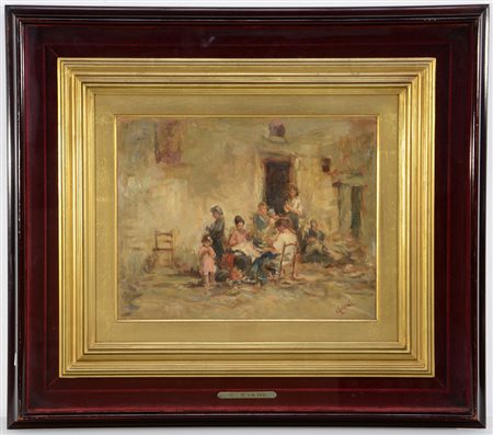 Ignoto "Interno con figure" olio su cartone telato (cm 27x34,5) firmato Ciani in basso a destra. In cornice