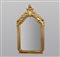 Specchiera in legno dorato con cimasa applicata,scolpita e intagliata, di...