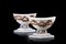 Coppia di saliere in vetro di forma neoclassica con decorazione policroma...