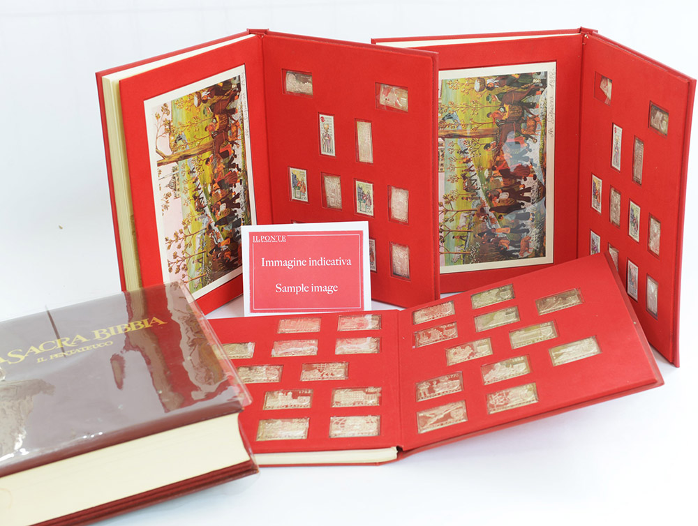 [LIBRI] Anni '70 Lotto di 4 volumi editoriali contenenti al fondo riproduzioni di francobolli o erinnofili dentellate impresse in rilievo su lamina d'argento. Da esaminare.