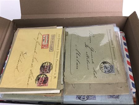 [MONDIALI - STORIA POSTALE] 1870/1970 circa Lotto formato da un centinaio di buste e FDC quasi tutte indirizzate in Italia, sopratutto in partenza dalla Germania nel periodo 1890/1895, sia raccomandate che ordinarie. Da esaminare. Covers