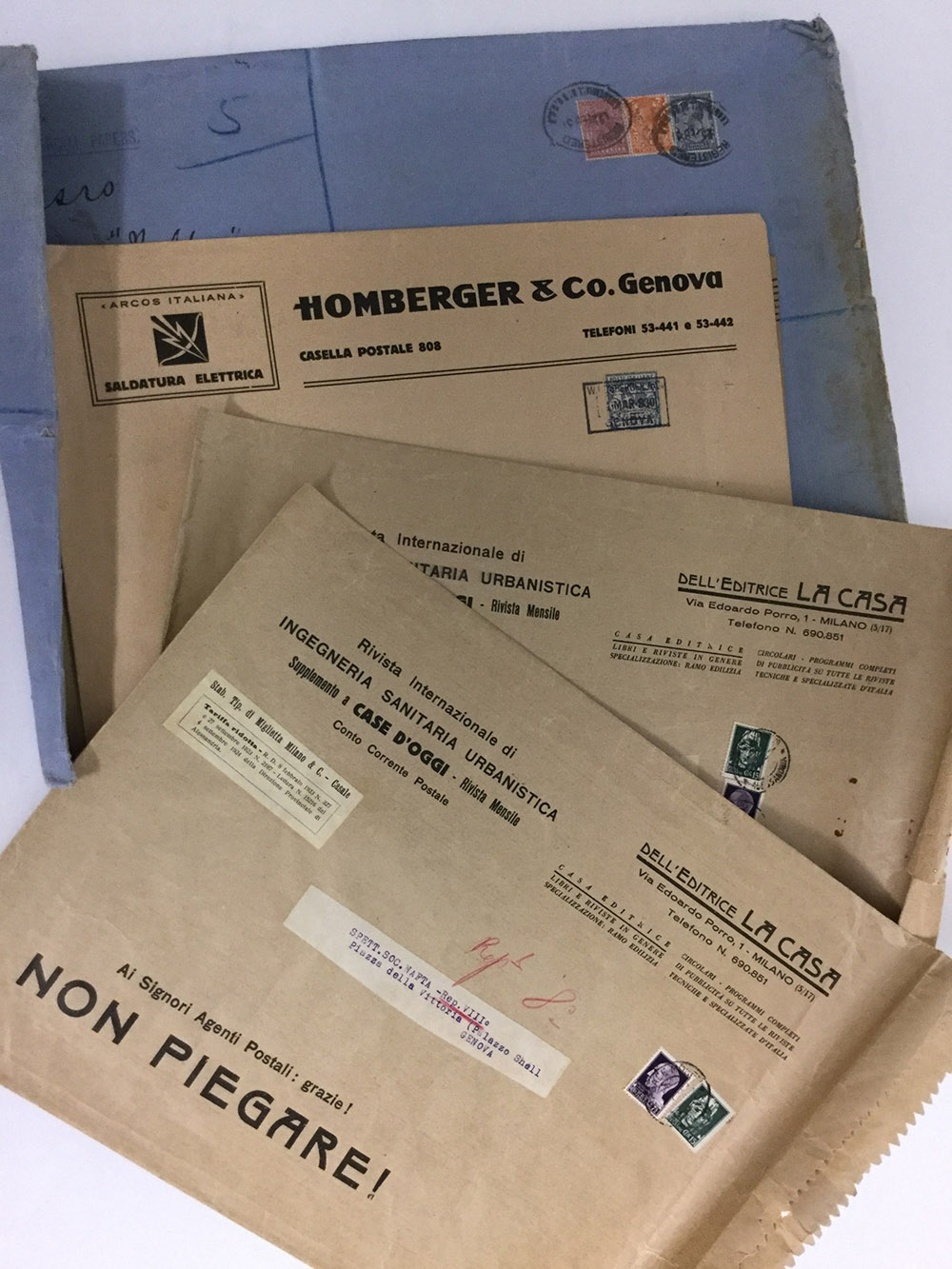 [MONDIALI - STORIA POSTALE] 1930/1935 Lotto di 5 buste di grande formato affrancate in tariffa stampati, provenienti da Italia, USA, Gran Bretagna e con destinazione "Nafta" Società Italo Americana del Petrolio in Genova. Da esaminare. Covers