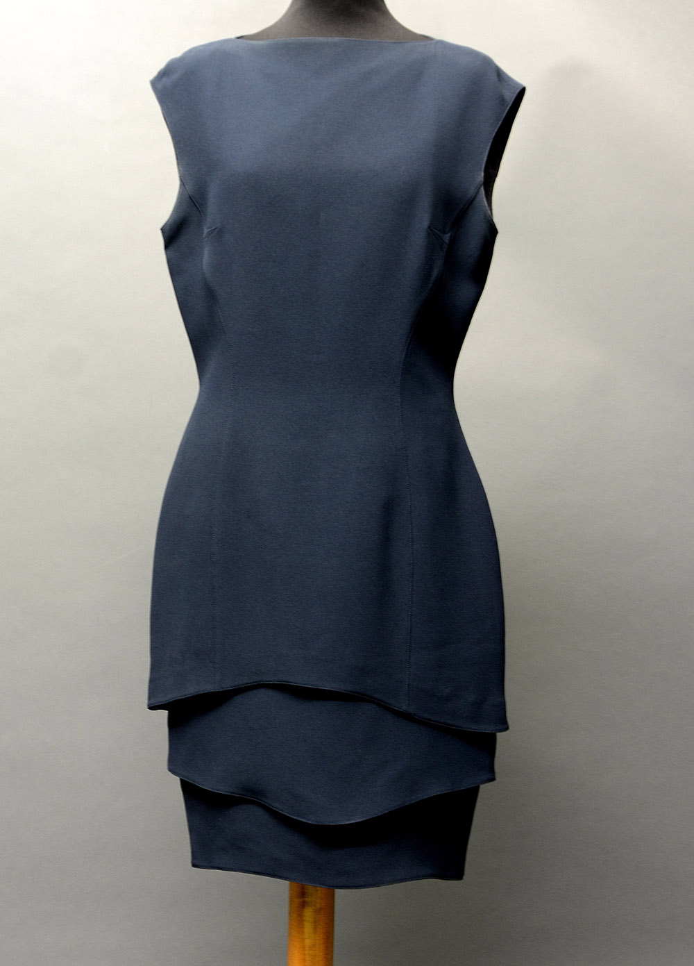 THIERRY MUGLER Vestito smanicato in crepe di seta blu (mis media)