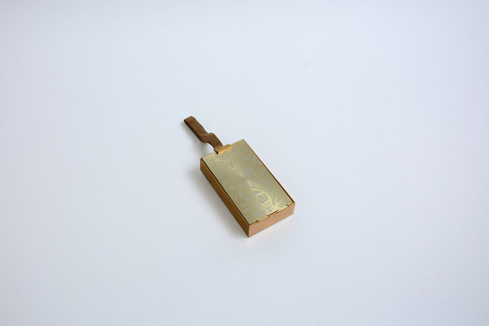 Vanity case a doppio scomparto in metallo color oro e decoro floreale, con...