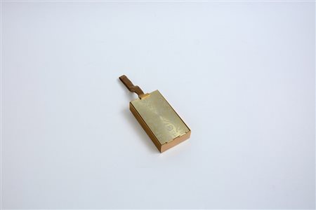 Vanity case a doppio scomparto in metallo color oro e decoro floreale, con maniglia (cm 12 ca.)(segni d'uso)