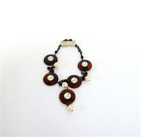 Collana composta da elementi sferici in similtartaruga decorata con grandi strass, paste vitree e perle fancy