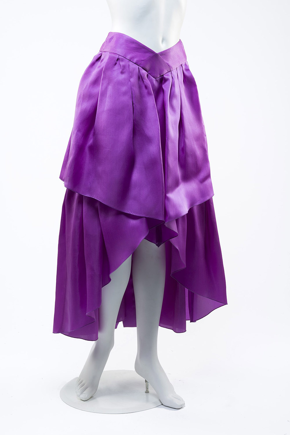 CHANEL Gonna longuette in organza di seta color glicine con spacco sul retro...