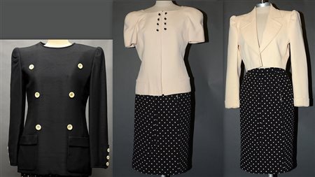 YVES SAINT LAURENT, VALENTINO Lotto composto da bolero in lana, casacca in shantung e completo gonna e casacca a mezza manica in seta, colori diversi (tg 38/40)