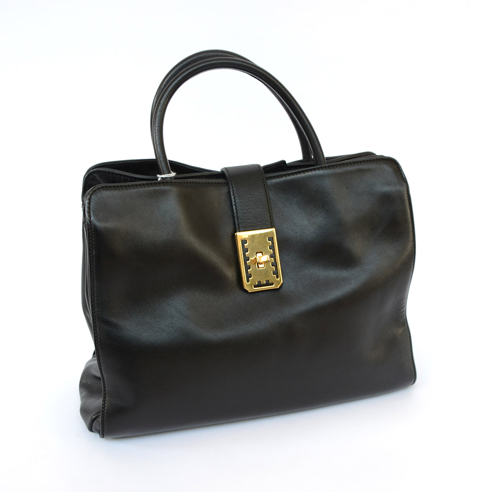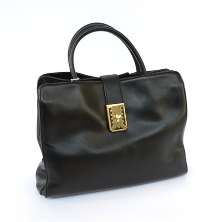COLOMBO, MILANO Borsa a soffietto in nappa nera, doppio manico a braccio, chiusura in metallo color oro, interno in pelle (cm 36)