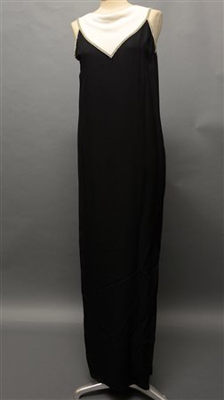 VALENTINO BOUTIQUE Vestito nero smanicato a tunica con bavero bianco bordato...