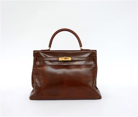 HERMES - PARIS Borsa Kelly in cuoio color tabacco. Certificato di recente restauro e pulitura di Hermès. Anni 50 circa (cm 36)
