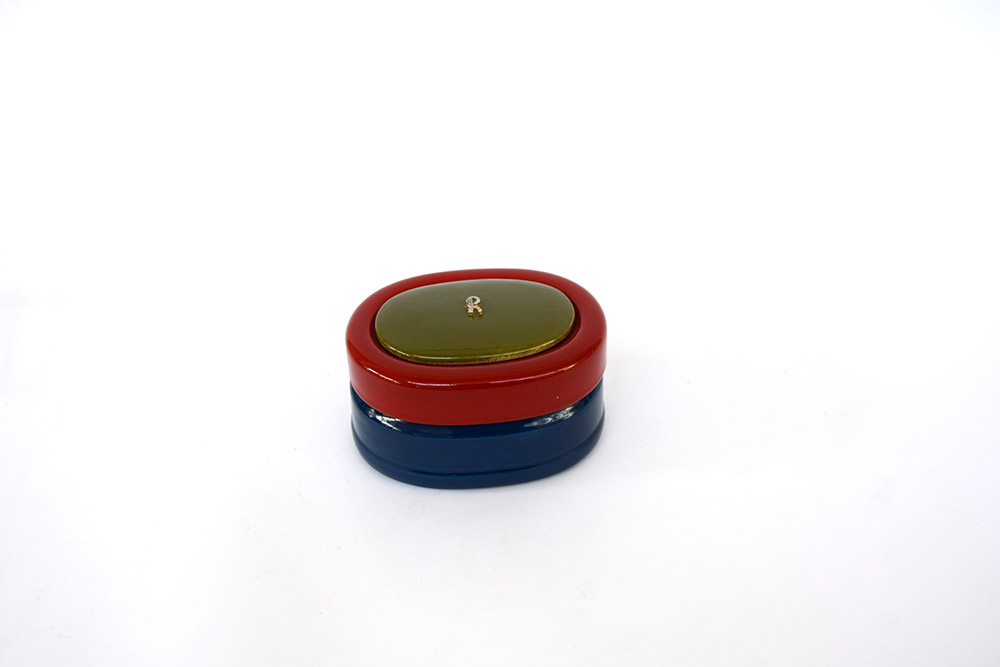 ROBERTA DI CAMERINO Scatola in ceramica smaltata nei classici colori del rosso, blu verde (cm 15)