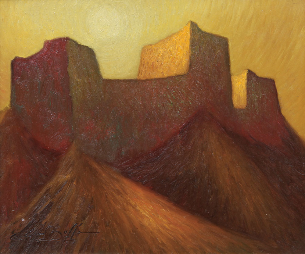 GIOVANNI BOFFA Torino 1935 Antiche civiltà olio su tela cm. 50x60, firma in...