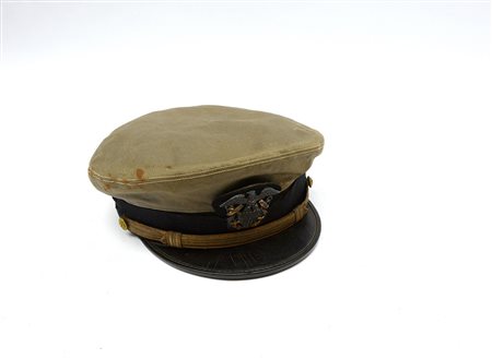 Cappello a visiera da ufficiale della US Navy. Raro cappello di colore verde tipico delle uniformi dell'aviazione della marina. U.S.A. 1942