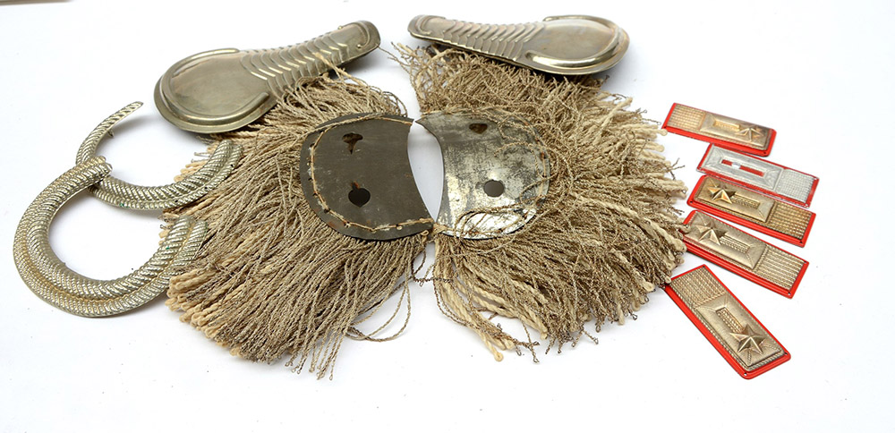 Lotto composto da due paia di spalline per alta uniforme da sottufficiale dei Carabinieri Reali e varie mostrine da uniforme. Italia, 1940 ca