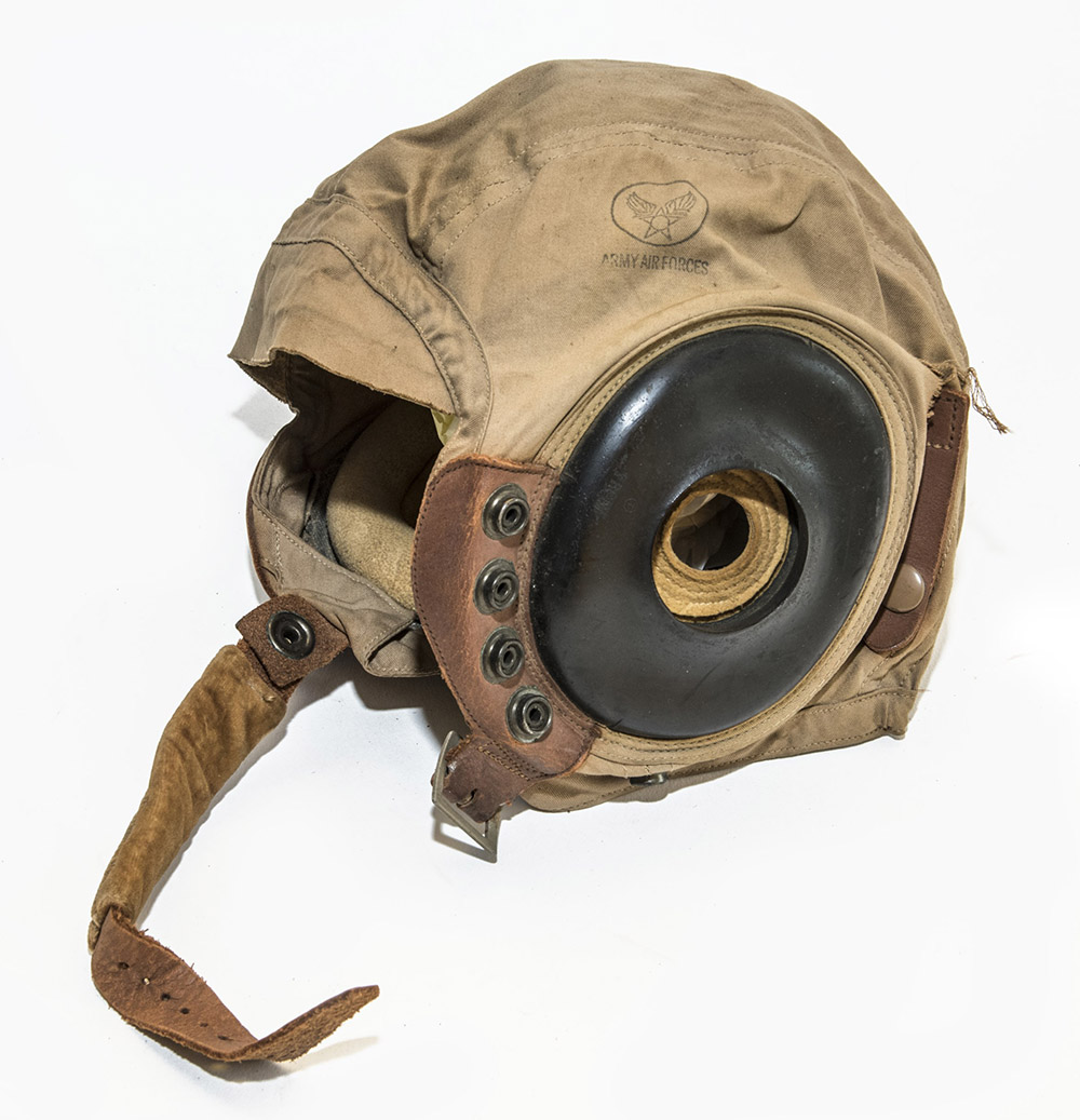 Cuffia da pilota in tela color cachi della US Army Air Force modello AN H-15 utilizzato dai piloti nel teatro bellico del pacifico 1944 U.S.A.