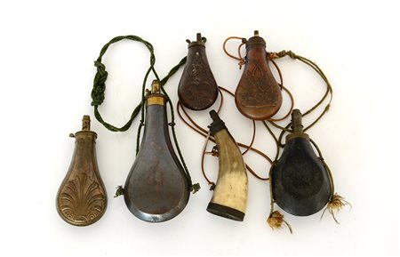 Lotto composto da sei portapolvere, cinque in metallo e uno in corno. XIX secolo