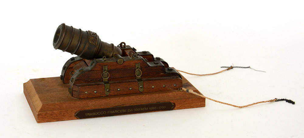 Modello di obice trabucco della fine del '600/inizio del '700, in bronzo e legno (lunghezza cm 22)