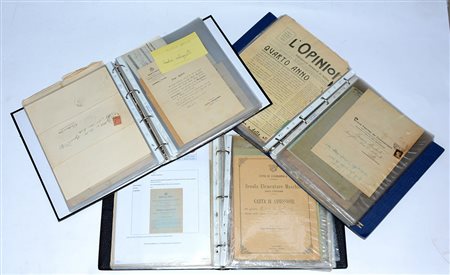 Lotto composto da tre raccoglitori conteneti documenti, lettere e pagine di giornale dei primi del '900