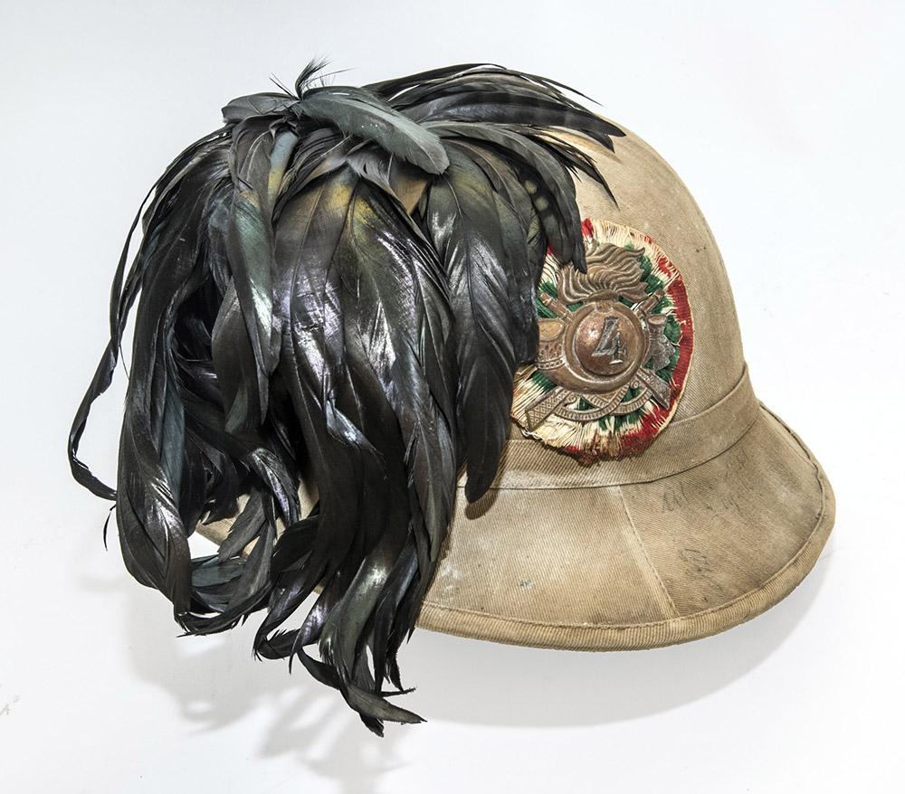 Casco coloniale del 4° Reggimento bersaglieri appartenuto al veterano Canali....