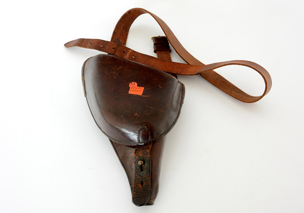 Fondina in cuoio da ufficiale dell'esercito francese, completa di bandoliera per revolver modello 1873 (lievi difetti)