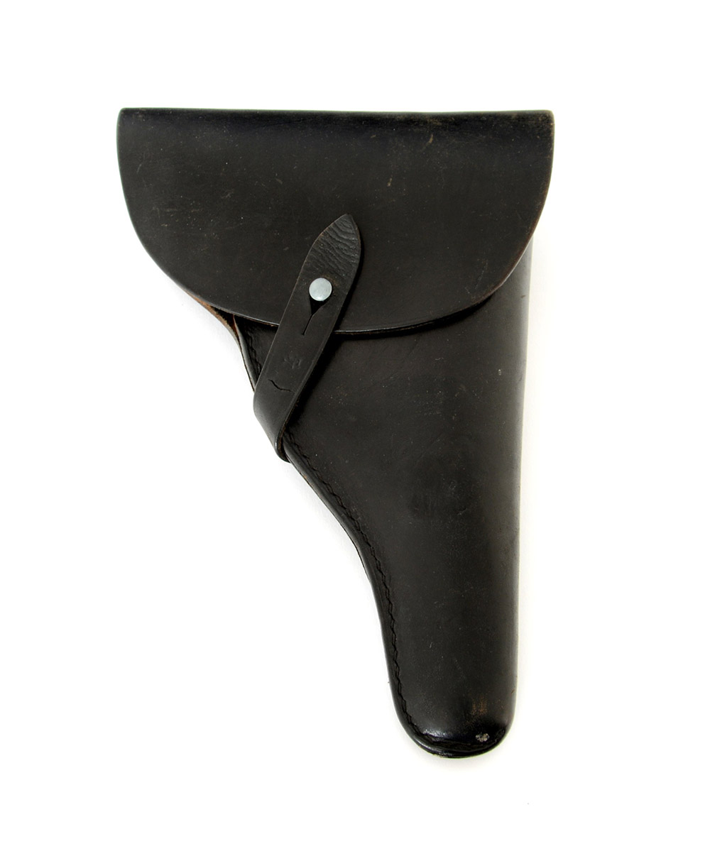Fondina in cuoio nero per revolver. Produttore Eigentum, Vienna. Esercito...