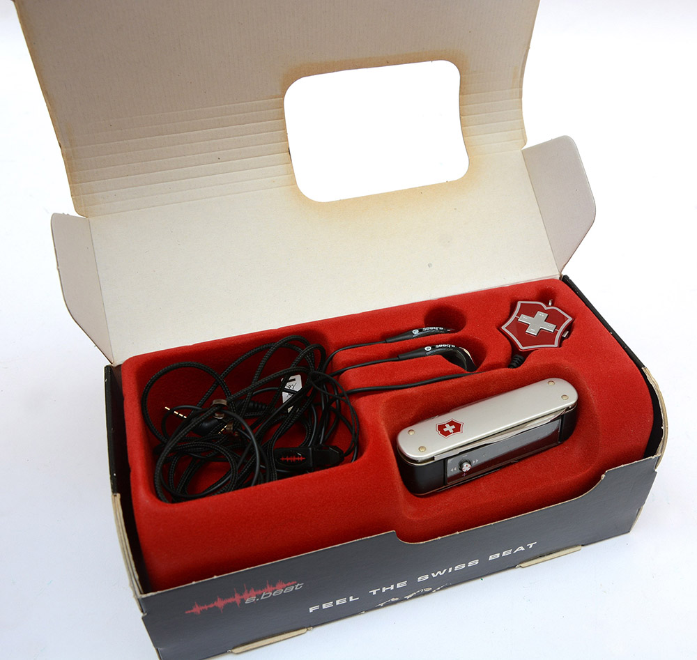 (Historica) Coltellino multiuso con MP3 e completo di accessori, marca Victorinox (Svizzera). In confezione originale.