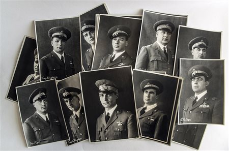 Interessante lotto composto da oltre quindici fotografie d'epoca degli ufficiali piloti compreso un generale, trasvolatori dell'Atlantico nella famosa crociera del Decennale,1933 Italia (formato ca 20x15)