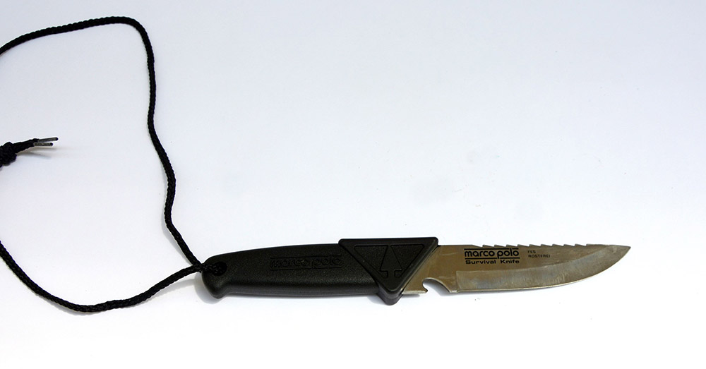 (Historica) Coltello da sopravvivenza completo di tutti i suoi accessori, marca Marco Polo. In confezione originale.