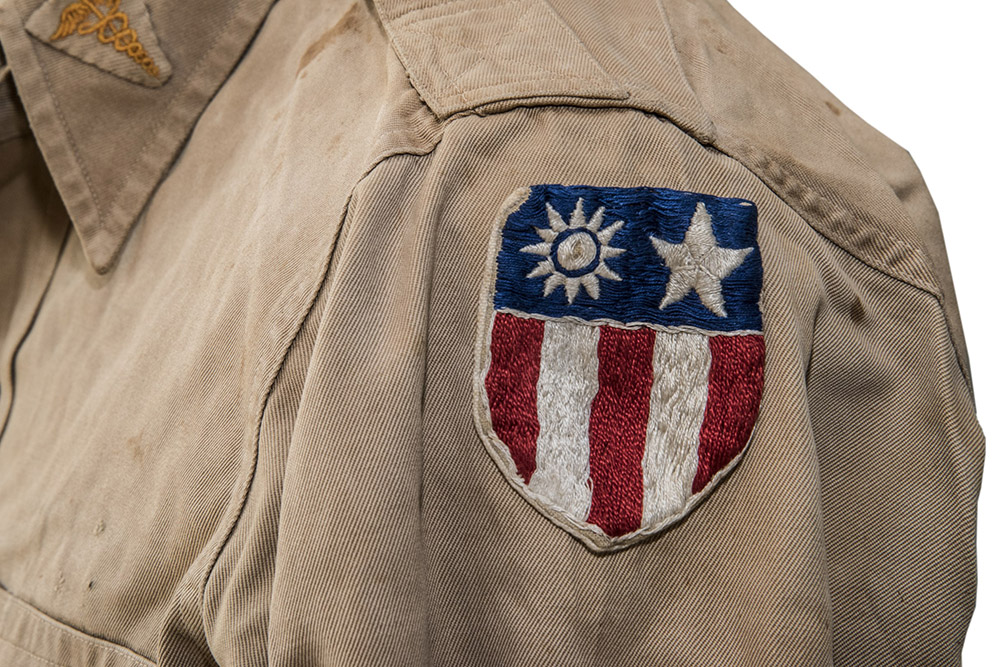 Camicia da maggiore della US Army. Raro fregio della campagna di Cina sulla spalla sinistra. U.S.A. 1940