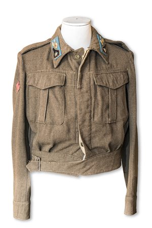 Giacca da sottufficiale dei paracadutisti, raro cimelio del Regio Esercito Italiano del 1944. Produzione inglese in quanto del periodo del Regno del Sud. Completa