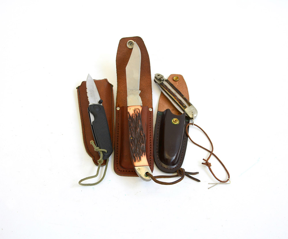 Lotto di tre coltelli pieghevoli