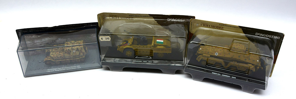 Lotto di dieci modellini moderni di mezzi militari. In confezione