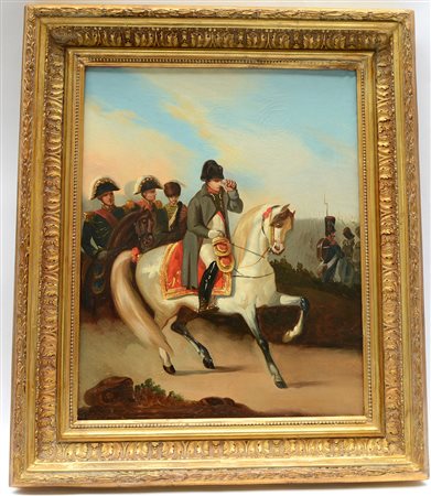 Ignoto "Napoleone a cavallo con lo Sato Maggiore" olio su tela (cm 40.5x32),...