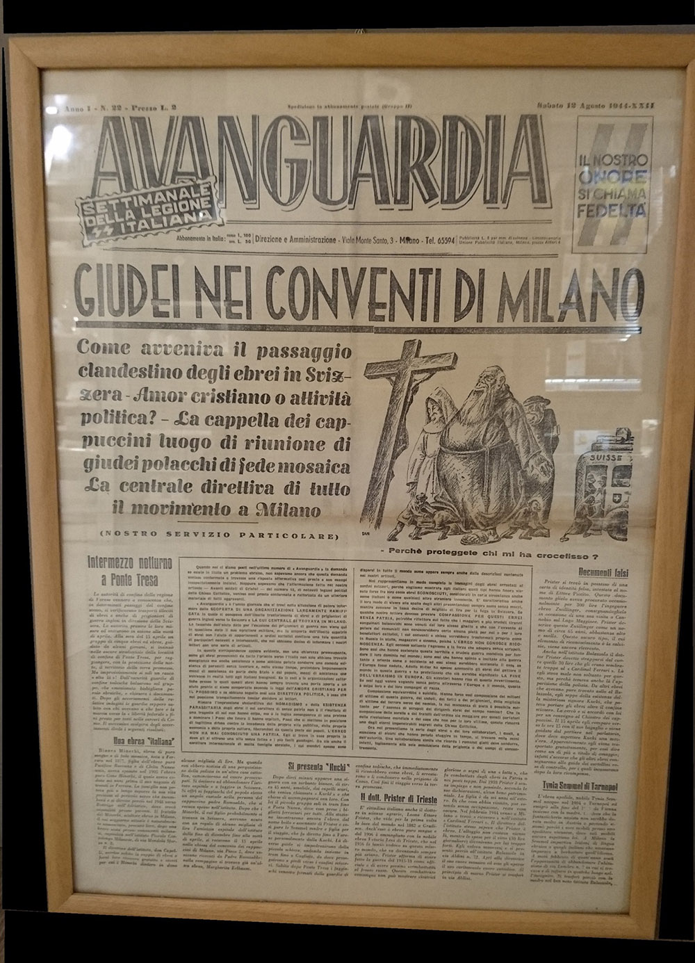 Settimanale "Avanguardia" n.22, 1 agosto 1944 organo ufficiale sella 29° legione delle S.S. italiana. In cornice, Italia 1944 RSI