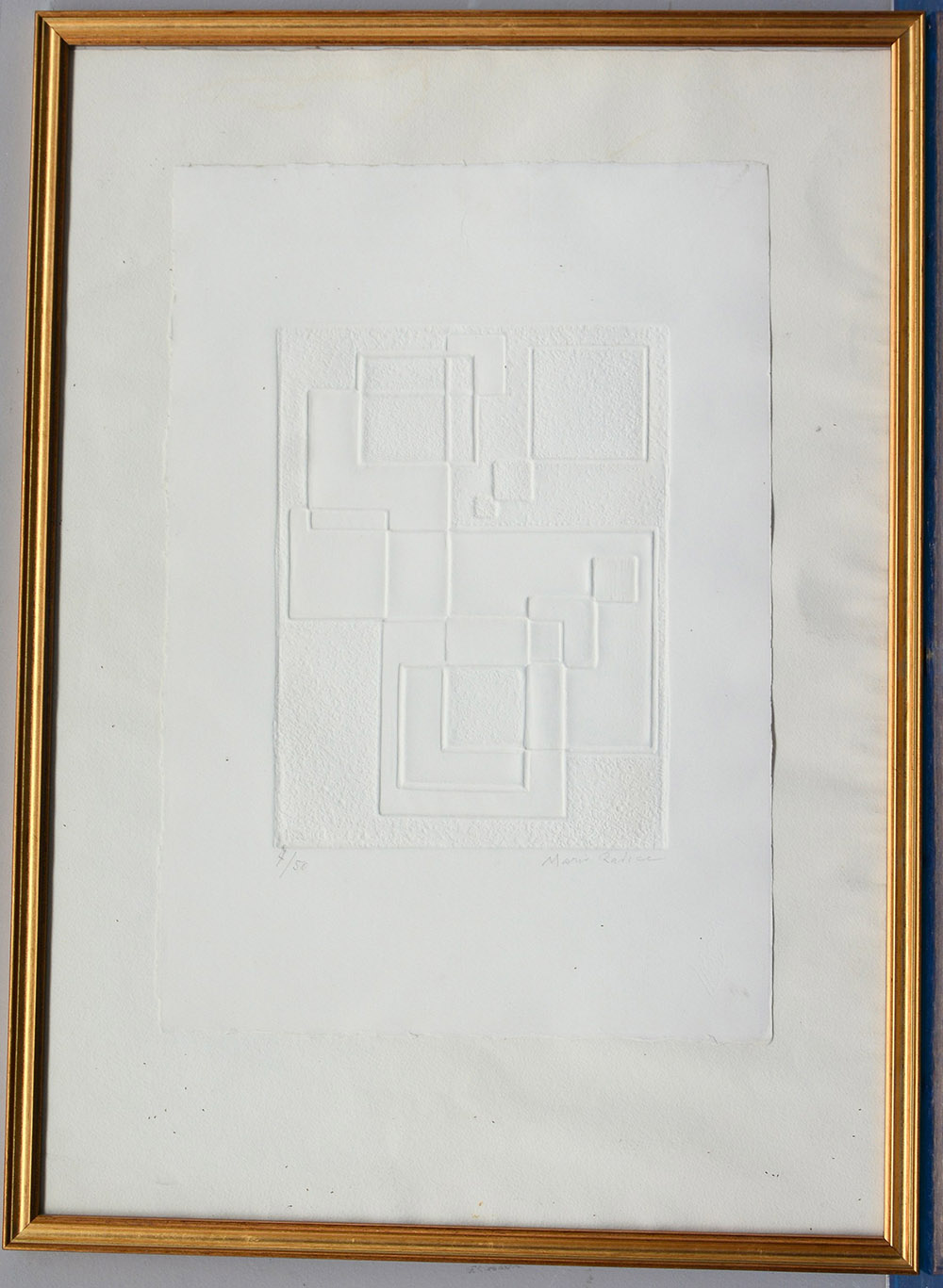 Mario Radice Como 1898 1987 "Senza titolo", incisione a secco su cartoncino (cm 69x48,5)numerata 7/50 e firmata in basso in lapis. In cornice
