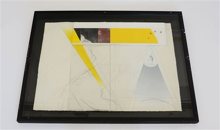 Angelo Cagnone Carcare 1941 "Senza titolo" 1985, tecnica mista e assemblage su carta (cm 55x75) firmato e datato in basso a sinistra. In cornice