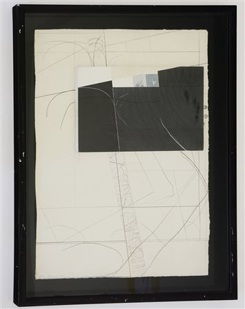 Angelo Cagnone Carcare 1941 "Senza titolo" 1985, tecnica mista e assemblage su carta (cm 75x55) firmato e datato in basso a sinistra. In cornice