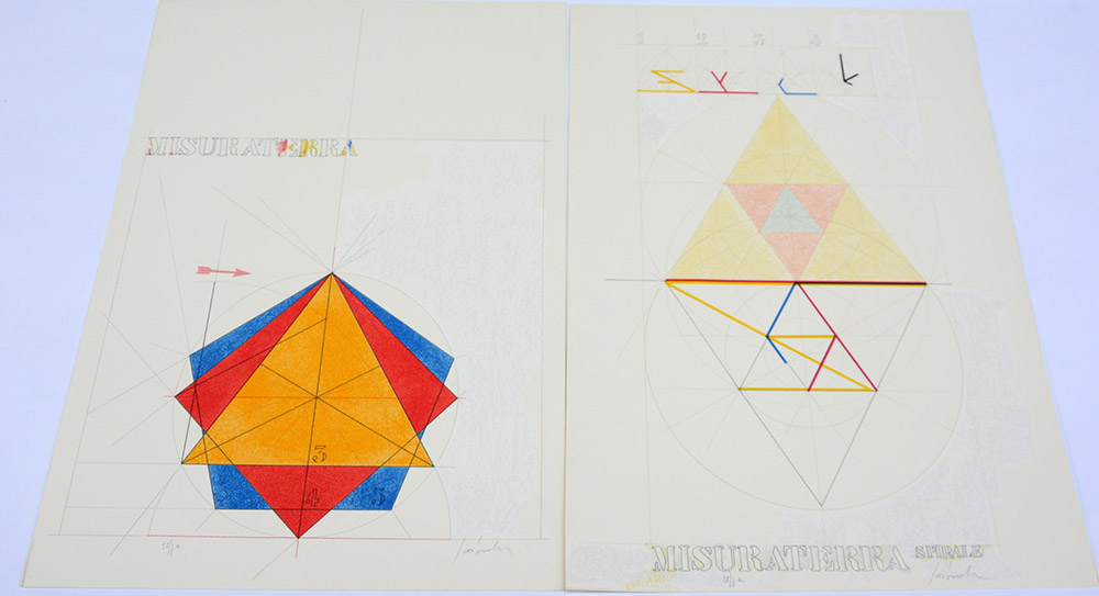 Andrea Zanzotto, Giò Pomodoro Dodici litografie firmate e numerate 27/p.a. in basso a matita (cm 50x35) ad illustrazione del testo " Sovraesistenze " di Andrea Zanzotto. Opera ideata da Guido Ballo e curata da Piergiorgio Spallacci. Edizioni della Pergola, Pesaro, 1977. Esemplare 27/p.a. In astuccio editoriale telato.
