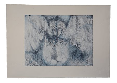 Firma indecifrata "In azzurro" litografia (cm 70x100) esemplare 30/40,...