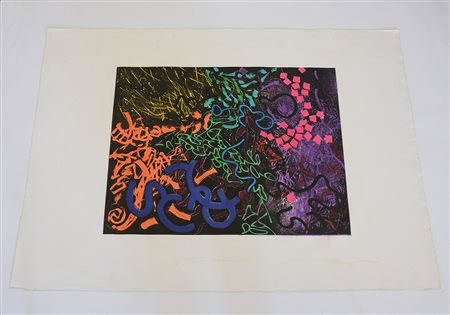 Ignoto "Composizione astratta" serigrafia (cm 129x92 totali) (lievi difetti)