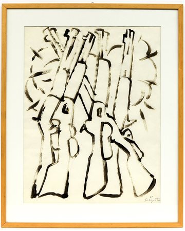 Salvatore Scarpitta New York 1919 2007 "Senza titolo" 1985 inchiostro su carta (cm 55x43) Firmato e datato in basso a destra. In cornice Opera registrata nell'Archivio Scarpitta a cura del Dott. Luigi Sansone.