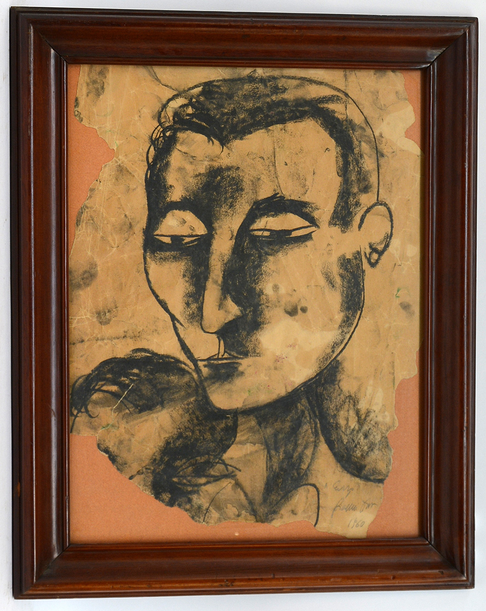 Gianni Dova Roma 1925 Milano 1991 "Senza titolo" 1960, carboncino su carta (cm 49x38, dedicato e datato a matita in basso a destra. In cornice (difetti e mancanze)
